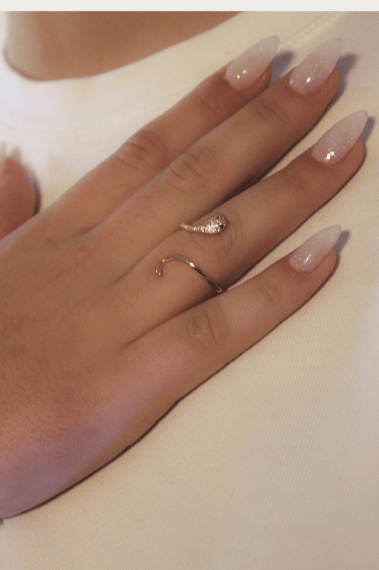 טבעת צדפה משובצת זירקונים